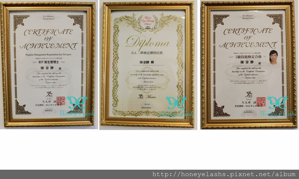 ★社団法人日本まつげエクステンション協会二級檢定課程結業 証。